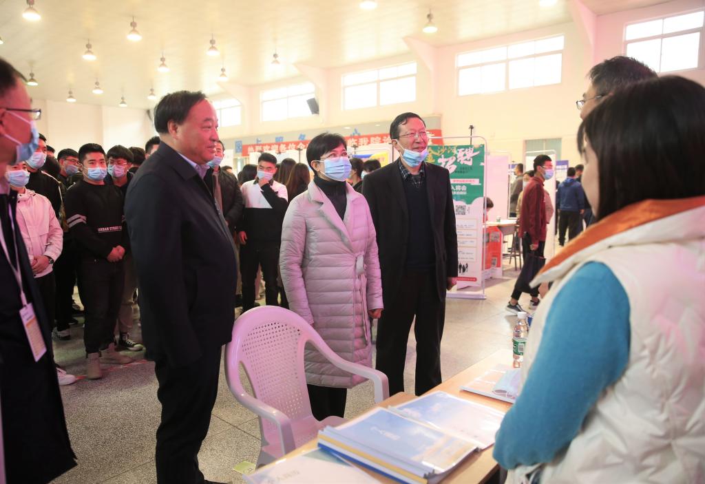 党委书记陈宁、校长王周锁、党委副书记任得元及招生就业处处长袁军儒等到招聘会现场,对招聘企业代表进行慰问,询问其招聘计划、目前的招聘情况及往届毕业生在企业的发展状况等。校领导表示,非常欢迎和感谢各招聘企业来beat365官网招聘选拔人才,更期待企业能够与beat365官网加强深度校企合作。同时,学校领导也与现场求职学生进行了亲切交谈,询问其求职现状,积极鼓励求职学生不忘初心、转变观念、扎根基层、服务社会。