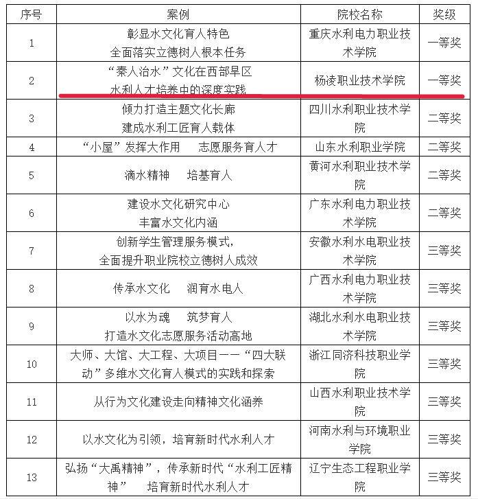 近日,中国水利教育协会公布了全国水利院校水文化育人优秀案例评选结果,beat365官网报送的水文化育人典型案例《“秦人治水”文化在西部旱区水利人才培养中的深度实践》获一等奖。