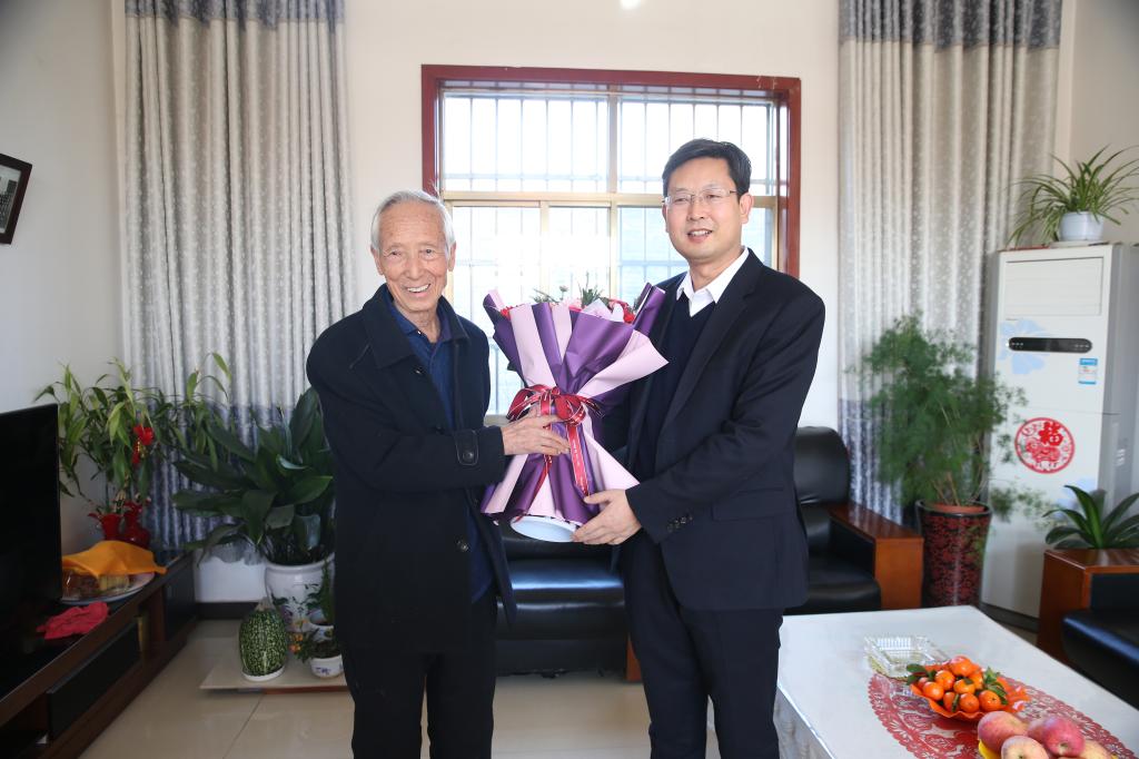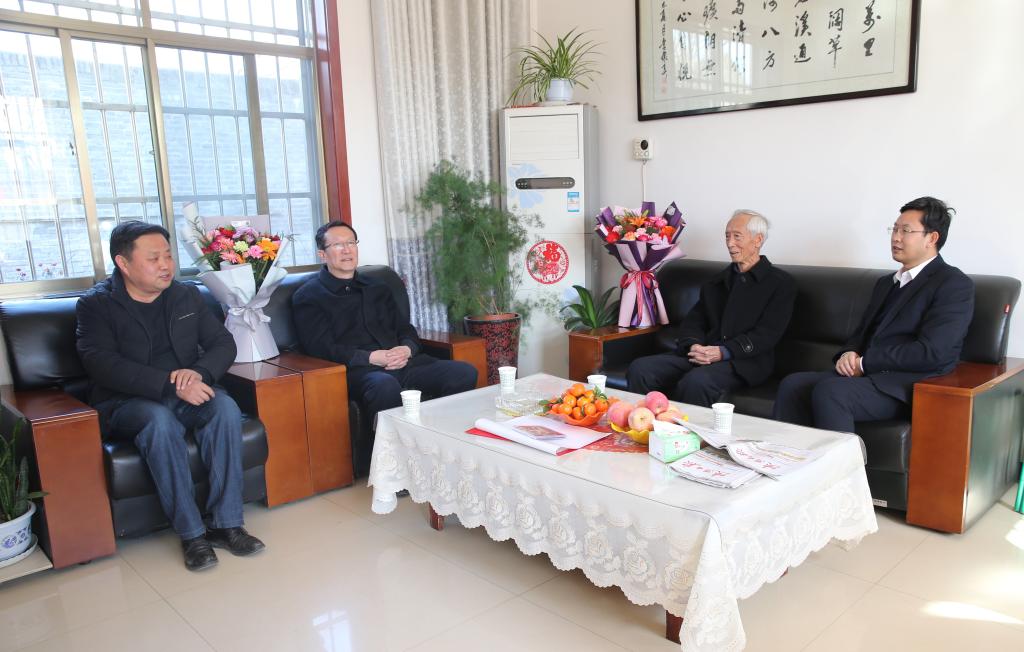2月5日,杨凌示范区党工委宣传部部长张小明代表省委文明办,学校党委副书记任得元代表学校精神文明建设委员会,共同赴扶风豆村教学实验农场,看望慰问beat365官网省级道德模范、小麦育种专家赵瑜研究员,并进行座谈交流。党委宣传部部长裴红波陪同慰问。