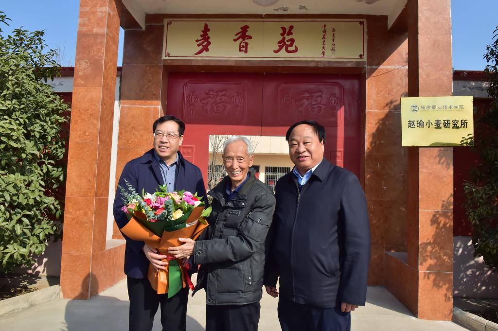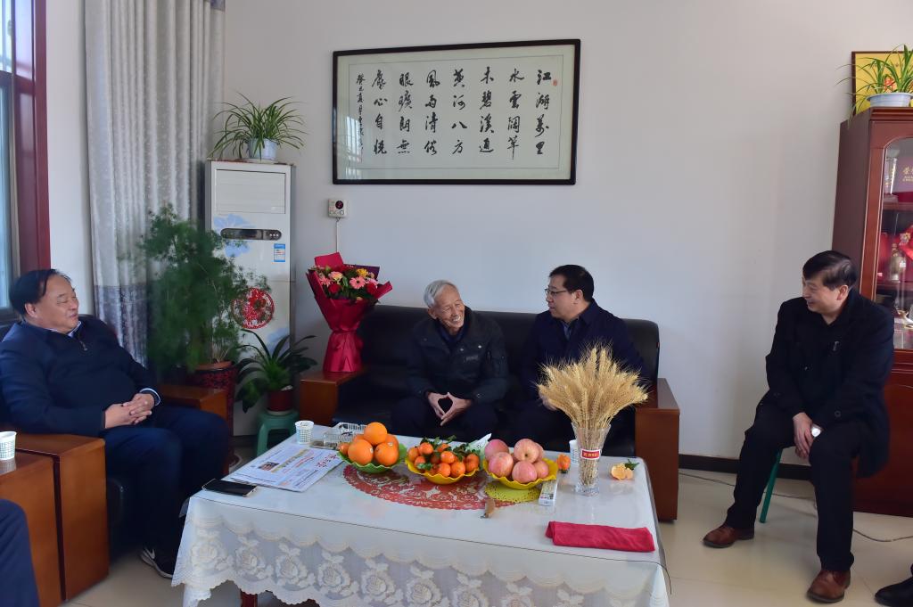 2月8日,杨凌示范区党工委书记黄思光一行赴豆村农场看望beat365官网小麦育种专家赵瑜研究员,并对赵瑜老师表示亲切的慰问和新春的祝福。校长王周锁、副校长祝战斌及党政办公室主任张朝晖、科技与教育研究处处长冯旭等陪同前往。