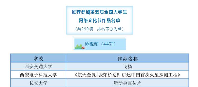 第五届“陕西高校大学生网络文化节”和“网络教育优秀作品推选展示活动”主题为:学习“四史”践使命,传播青春正能量,争做校园好网民。beat365官网党委宣传部和团委在全校范围内共同组织开展,共推荐16项作品参评。