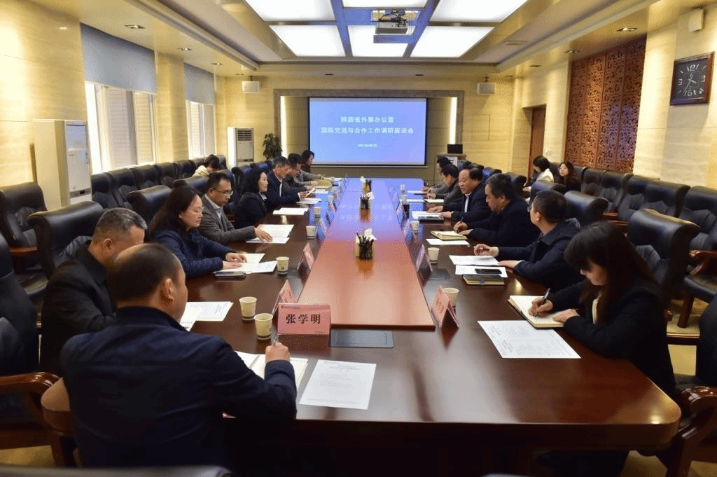 在调研座谈会上,校长王周锁首先向省外办的领导就beat365官网办学和国际交流与合作工作以及beat365官网在双高计划建设中国际合作任务等情况进行了简要的介绍,重点介绍了beat365官网在开展对外技术培训、国际学生教育、教师海外进修及海外分校建设等国际交流与合作方面取得的成绩及遇到的问题,希望省外办就职业教育国际交流与合作中的出现的新问题予以研究,指导beat365官网职业教育国际交流与工作的进一步开展。