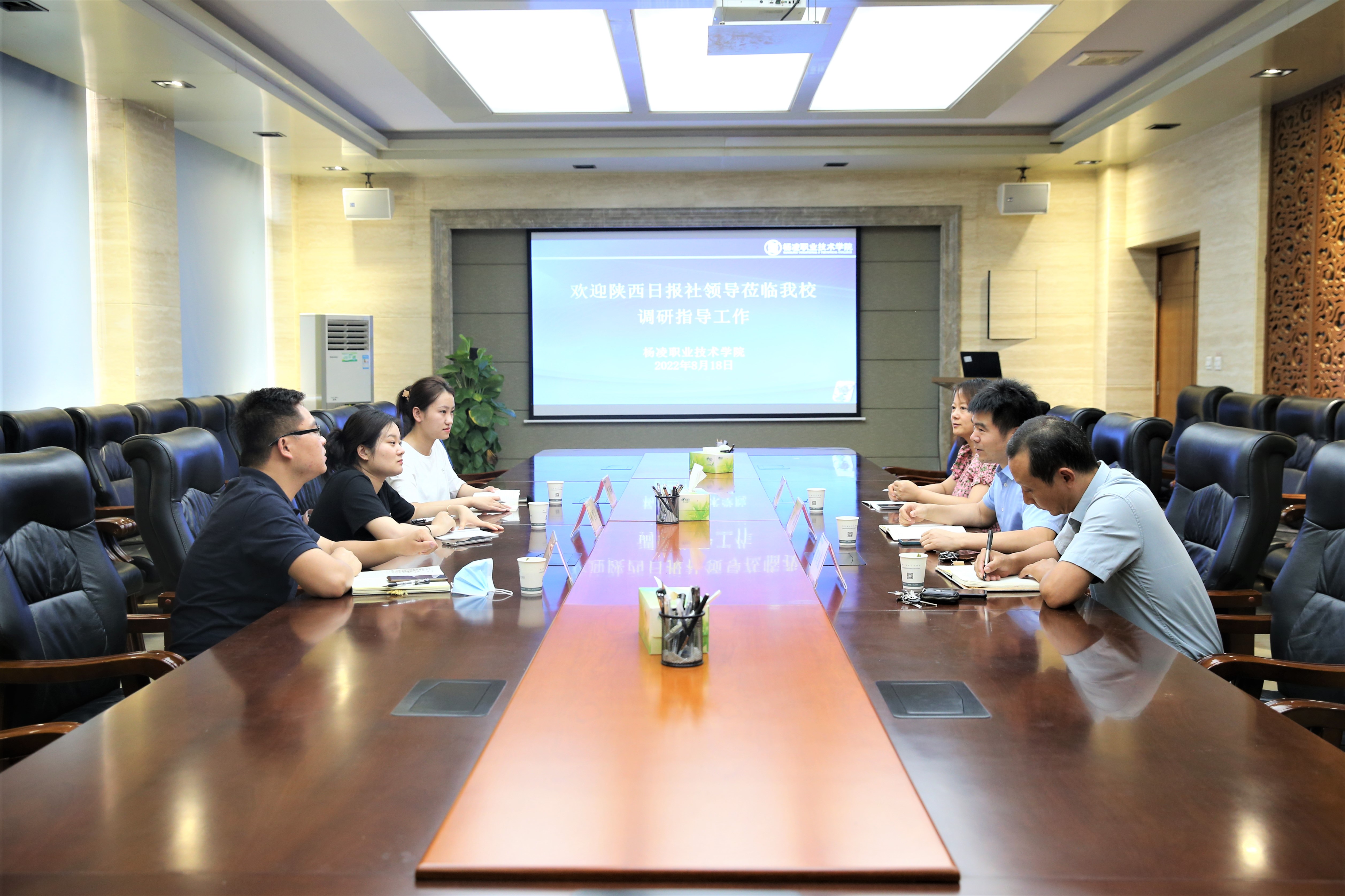 8月18日下午,陕西日报传媒集团考核管理部主管师雯静、陕西日报传媒集团人力资源部主管常芳琳、陕西日报社杨凌记者站站长仵永杰一行来到beat365官网,就学校在职业教育培训、助力乡村振兴等方面进行调研。学校继续教育与培训学院、村干部(农民)发展学院负责人黄璞,党委宣传部相关人员参加座谈会。