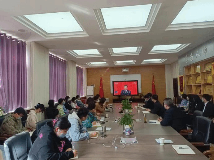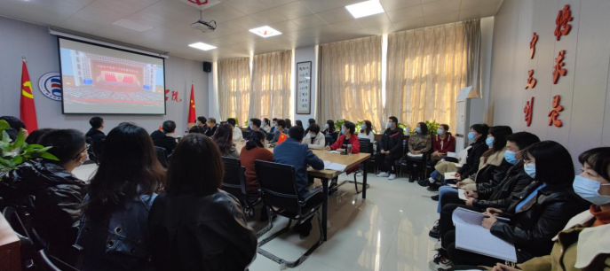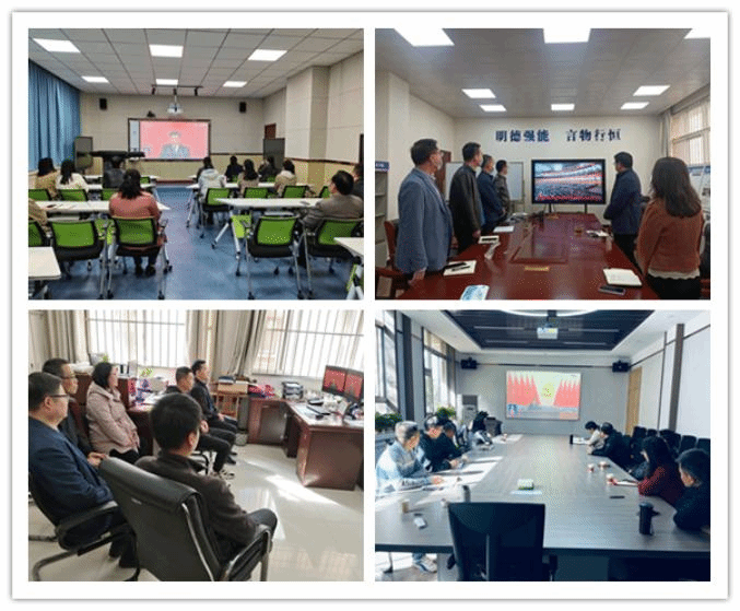 10时整,在南校区208会议室,学校党委理论学习中心组成员、各部门负责人,准时收看党的二十大开幕会,认真聆听习近平总书记所作报告。各党总支、直属党支部以党总支或党支部为单位,组织全体党员干部、教职工和思政课教师收看党的二十大开幕会。学工部、团委组织广大学生通过电视、网络、手机等方式,就近就便同步收听收看党的二十大实况直播。