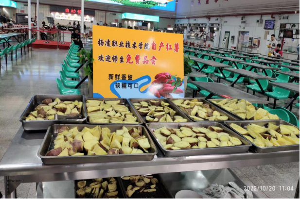 10月20日,学校种植的红薯喜获丰收,数千斤红薯经餐厅加工后,免费供应给全校师生品尝。