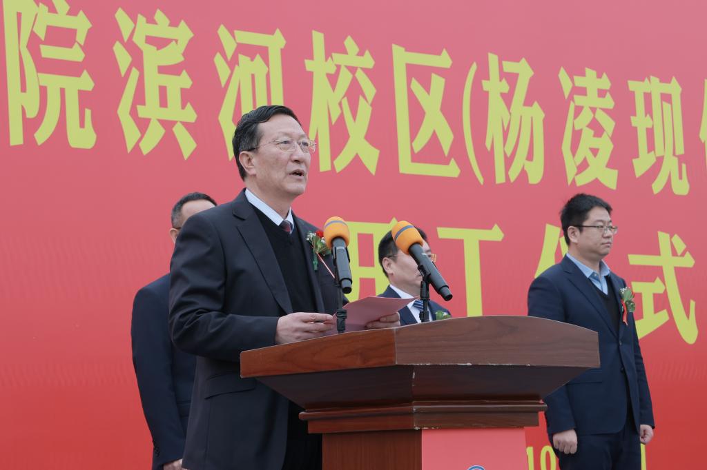 刘建林在讲话中指出,杨凌职业技术学院作为陕西首所挂牌成立的高职院校,长期以来,在省委、省政府的坚强领导下,高举农业职教改革旗帜,坚持立德树人根本,坚守强农兴农使命,积极守正创新、担当作为,各项事业取得的发展有目共睹,是我省乃至全国高职教育的一面旗帜。滨河校区的开工建设,是学校发展史上具有里程碑意义的一件大事,也是我省职业教育的一件喜事,更是我省贯彻落实党中央、国务院关于大力发展现代职业教育的重大举措。希望学校以此为契机,紧抓发展机遇,汇聚办学力量,努力把滨河校区打造成政、行、企、校四方合作的典范;主动对接国家和我省重大发展战略,集聚创新资源,加大科研攻关,发挥自身优势,为社会培养更多高素质技术技能人才、能工巧匠、大国工匠,更好服务区域经济社会发展,为谱写新征程上陕西高质量发展新篇章作出更大贡献。希望杨凌示范区党工委、管委会继续给予学校大力支持和帮助,推动学校在中国特色高水平高职学校建设和助力中国式现代化的新征程上迈上新台阶、展现新作为。他表示,省委教育工委、省教育厅将一如既往支持学校朝着建设“中国特色、世界一流职业大学”目标奋勇前进。