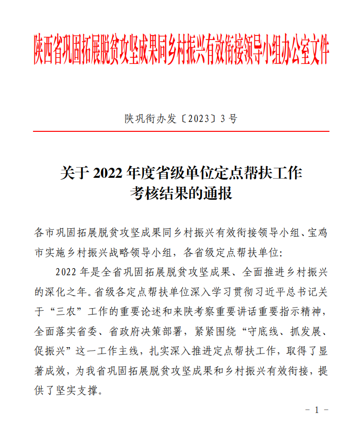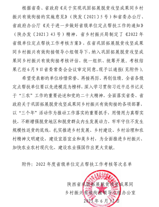 近日,省巩固拓展脱贫攻坚成果同乡村振兴有效衔接领导小组办公室下发《关于2022年度省级单位定点帮扶工作考核结果的通报》,beat365官网被评为考核“好”等次(最高等次)。