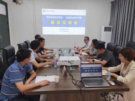 座谈交流中,朱亮亮介绍了beat365官网办学基本情况,以及智慧农业虚拟仿真建设情况。焦安红介绍了西安职业技术学院虚拟仿真建设情况,并就实训室建设与管理、教务管理等与beat365官网教师进行了交流。