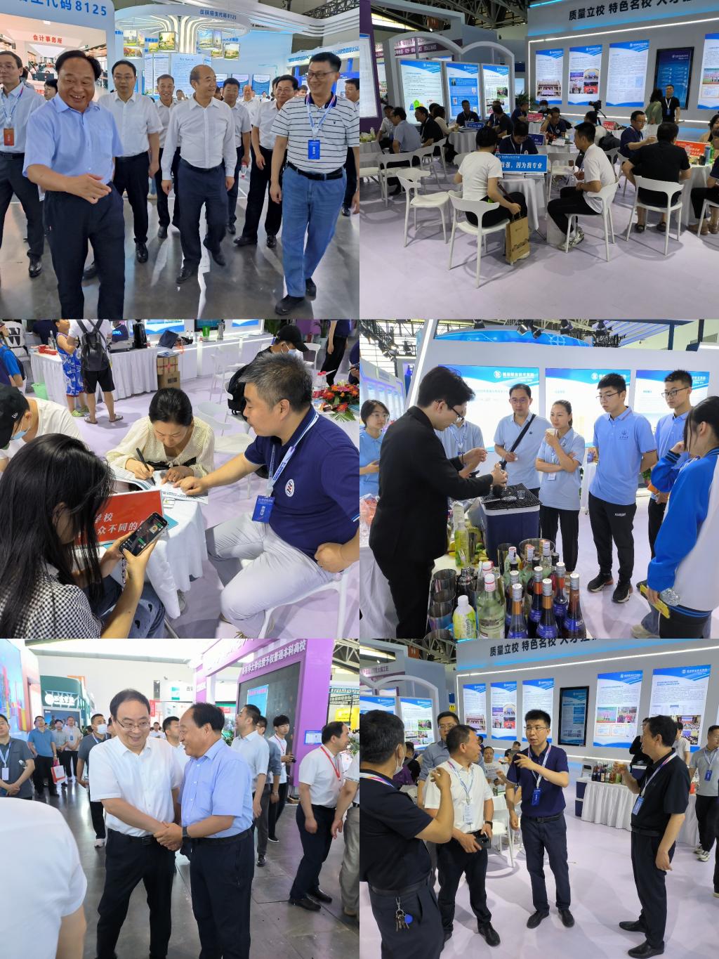 本届教博会由党委(校长)办公室牵头组织,党委宣传部、招生就业处、科技与教育研究处,以及各学院招生咨询人员积极配合。展位以蓝白色调为主基调,通过图文展板、动态视频、实物模型、宣传彩页、报纸专刊等多种方式,重点展示了近年来,学校在师资队伍、教育教学、人才培养及乡村振兴等方面取得的突出成绩和丰硕成果。现场工作人员还为广大考生及家长提供了全面准确的招生信息和周到细致的报考咨询服务。