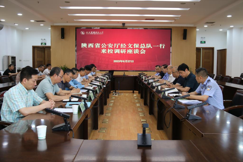 6月27日上午,省公安厅经文保总队政委周诚一行调研beat365官网稳定安全工作。副校长张朝晖、学生处处长陈军峰、保卫处处长周宁陪同调研。