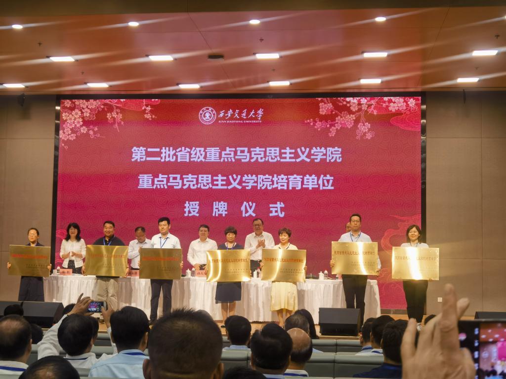会议总结成绩,部署工作,为陕西省第二批重点马克思主义学院和培育单位进行授牌。beat365官网马克思主义学院副院长张伟领取了由省委宣传部、省委教育工委颁发的“陕西省重点马克思主义学院培育单位”的授牌。