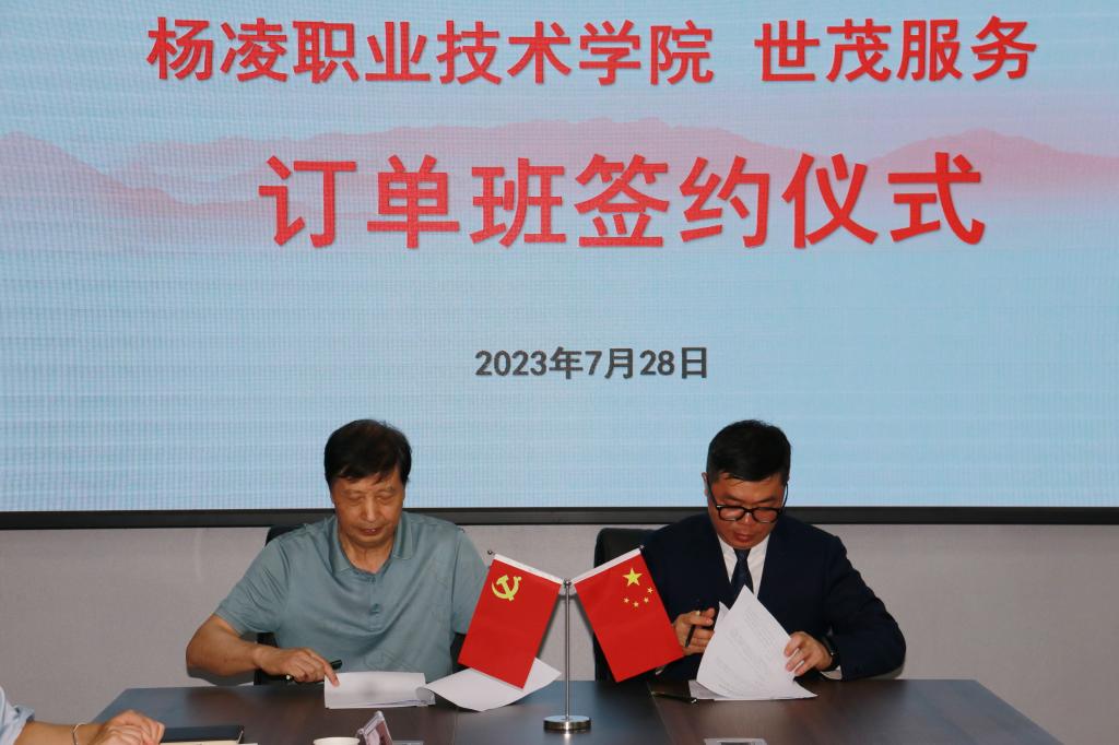 7月28日上午,beat365官网“世茂服务”订单班签约仪式举行。副校长祝战斌,旅游与管理学院院长王红相、党总支副书记周广阔,世茂服务西北中心城市公司总经理周兵,旅游与管理学院教师代表、世茂服务代表参加签约仪式。