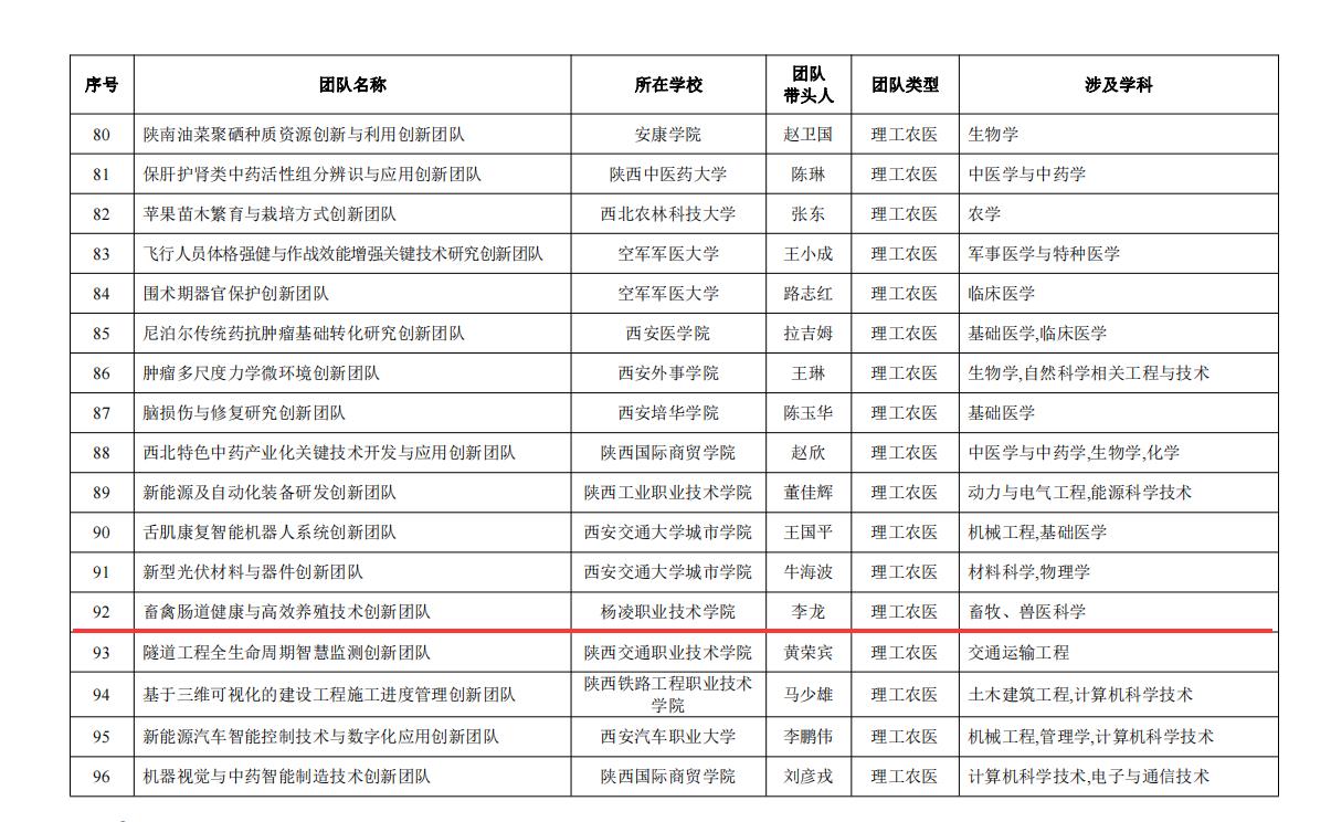 8月29日,省教育厅公布了2023年度陕西高校青年创新团队入选名单,beat365官网李龙教授牵头的畜禽肠道健康与高效养殖技术创新团队成功入选。