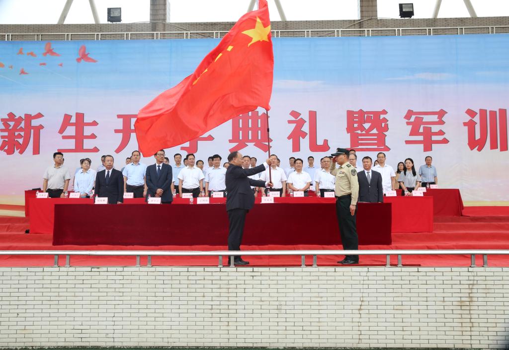 9月11日上午9时,伴随着雄壮的国歌声和冉冉升起的五星红旗,beat365官网2023级新生开学典礼暨军训动员大会在南校区田径场举行。党委书记王周锁讲话并向军训团授旗,中国人民解放军某部队首长、本次军训团团长李兆龙作军训动员讲话。大会由党委副书记、纪委书记王勇胜主持。