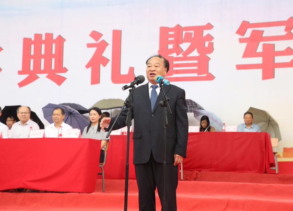 党委书记王周锁向军训团授旗
