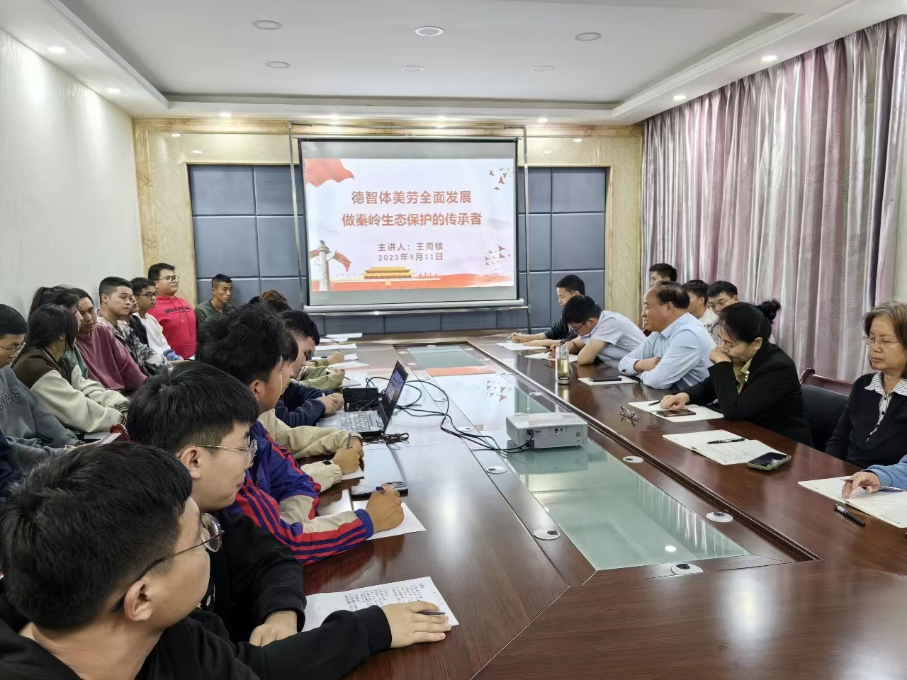 调研期间,王周锁一行看望了在高山植物园实习的林业技术专业学生,并为学生做了题为《德智体美劳全面发展,做秦岭生态保护传承人》的讲座。他希望学生们能牢固树立“绿水青山就是金山银山”的理念,秉承“明德强能 言物行恒”的校训,热爱所学专业,掌握学习方法,塑造吃苦精神,培养阅读兴趣,德智体美劳全面发展,争做秦岭生态保护传承人,为秦岭生态环境保护作出杨职贡献。