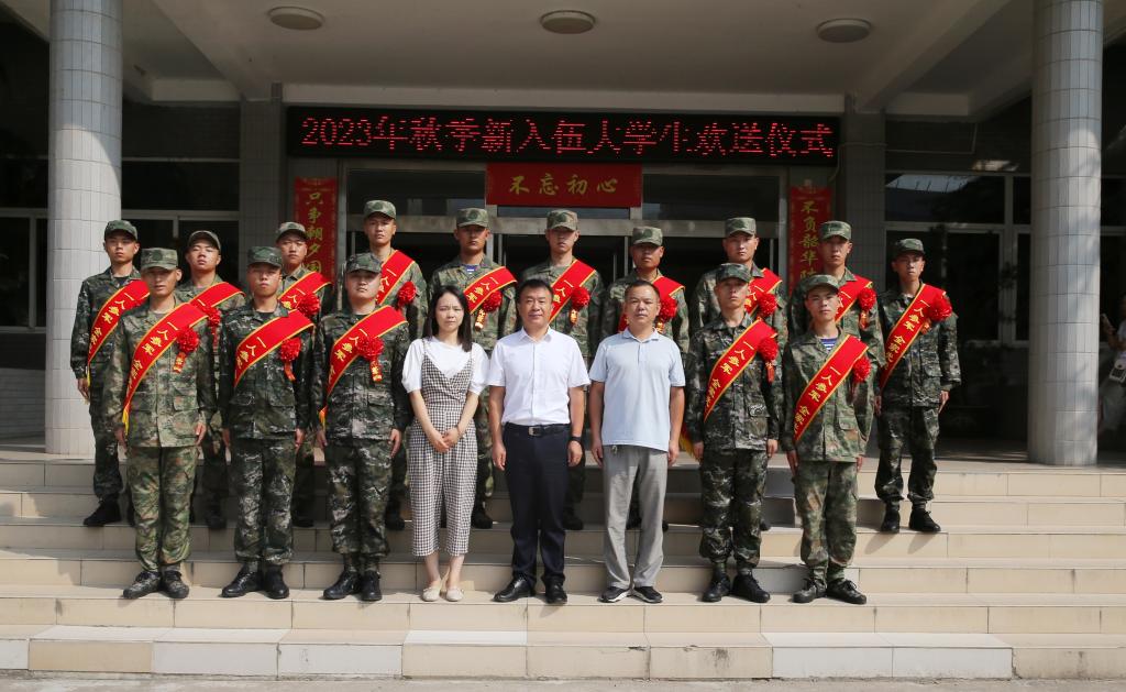 9月15日上午,beat365官网2023年秋季应征入伍大学生欢送仪式在陕西征程国防教育基地举行。党委副书记、纪委书记王勇胜,15名2023年秋季应征入伍大学生,相关老师和家长等参加了欢送仪式。