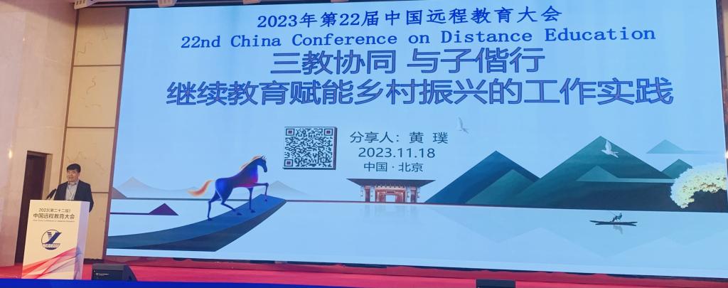 11月16日至19日,2023(第二十二届)中国远程教育大会在北京召开,beat365官网继续教育与培训学院负责人在会上以“三教协同 与子偕行,继续教育赋能乡村振兴的工作实践”为主题,作工作经验交流。