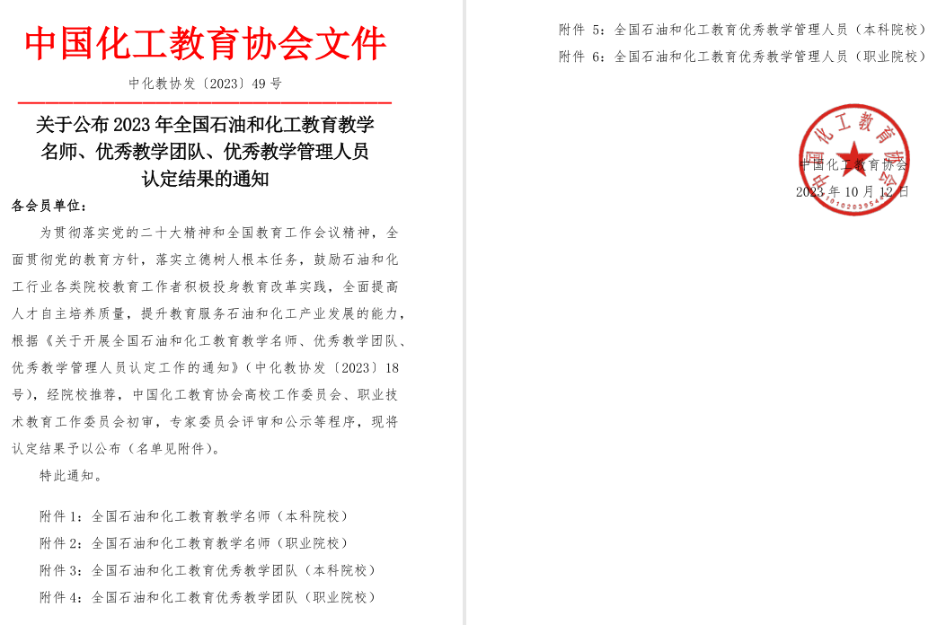 中国化工教育协会是石化行业从事教育服务的国家一级石油和化工行业组织,此次评选活动旨在鼓励全国石油和化工行业各类院校和培训机构的教育工作者积极投身教育改革实践,提高教育教学和人才培养质量,提升教育服务石油和化工产业发展的能力。
