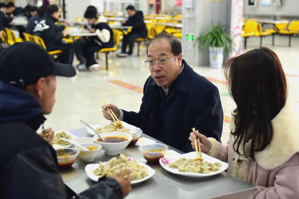 党委副书记、纪委书记王勇胜与学生一起吃饺子