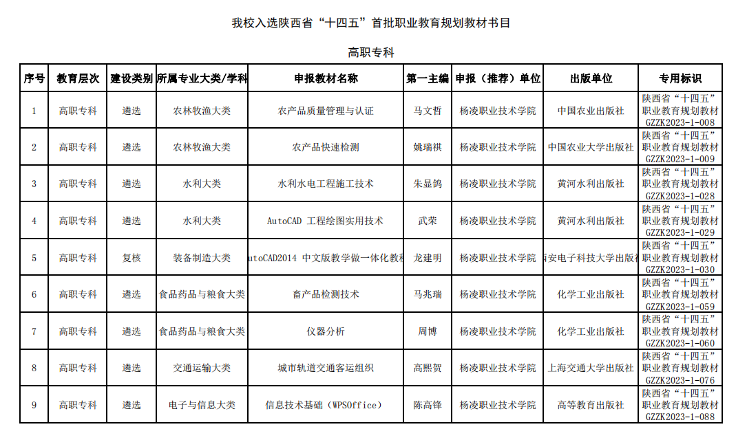 近日,省教育厅发布了陕西省“十四五”首批职业教育规划教材书目,beat365官网18本教材入选。