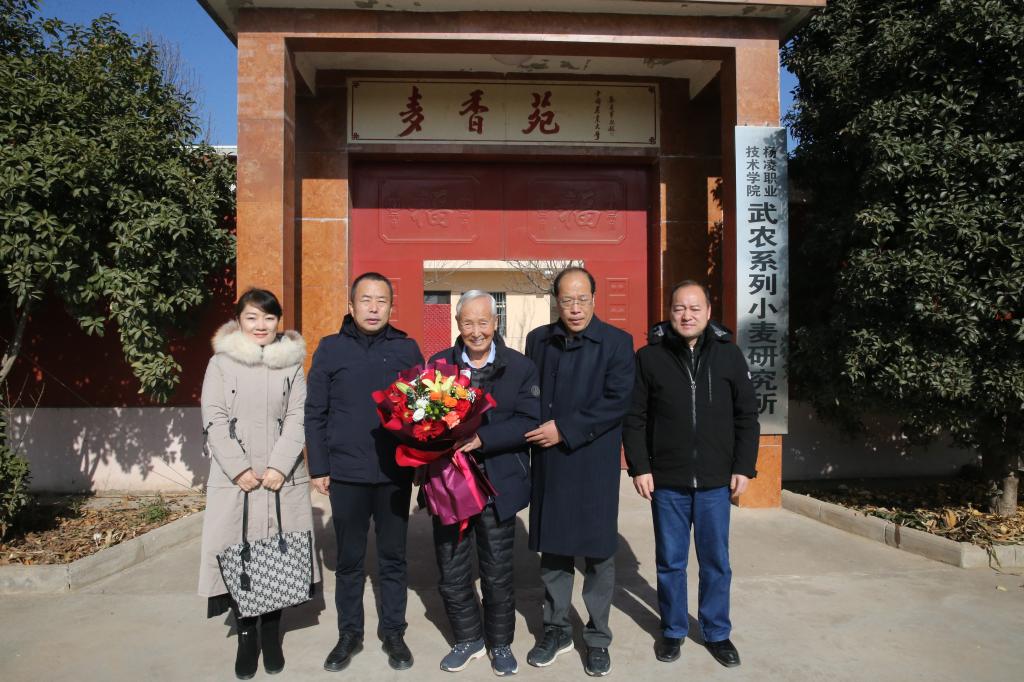 调研期间,仲伟周还实地考察了豆村农场育种基地,详细询问了赵瑜研究员的生活、工作情况,感谢他为学校育种事业做出的贡献,赵瑜介绍了自己的育种历程、取得成果、预期目标及武农981、武农988小麦种植面积和推广情况。