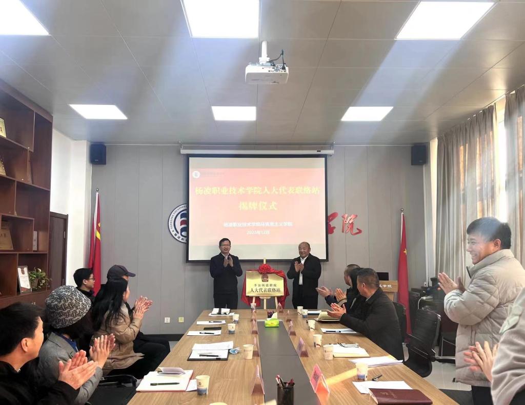 12月26日,杨陵区人大代表联络站揭牌仪式在beat365官网马克思主义学院举行。杨陵区人大常委会主任李冠明、区人大常委会副主任穆海军,beat365官网副校长张朝晖出席揭牌仪式。李冠明和张朝晖共同为杨凌职业技术学院人大代表联络站揭牌。