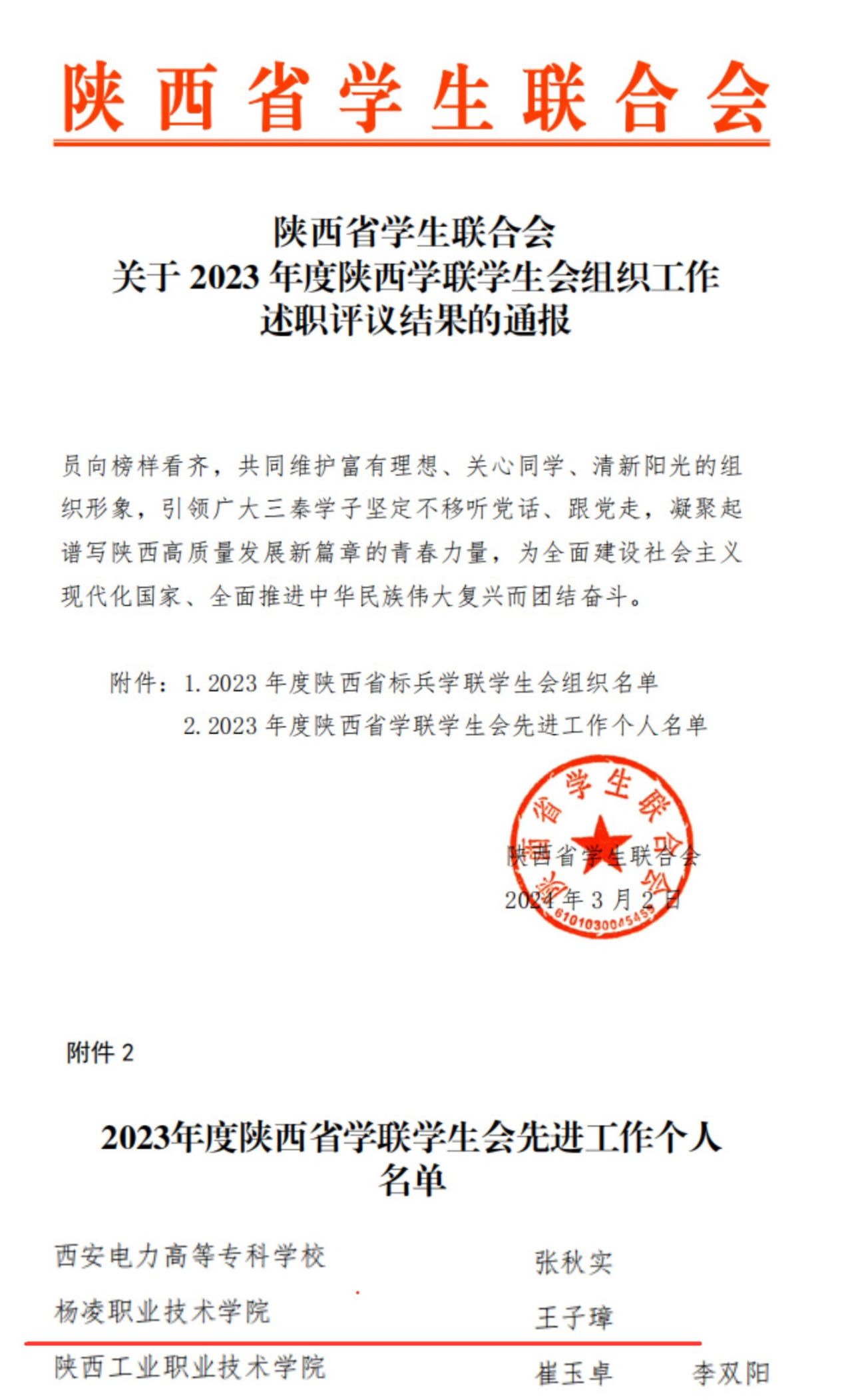 近日,团省委、省学联分别公布了2023年度陕西高校共青团工作和学生会工作考核结果,beat365官网荣获2023年度陕西高校共青团促进大学生创新创业先进单位,副校长张朝晖获2023年度“陕西高校支持共青团工作好书记(校长)”荣誉称号,校团委腊文洁获2023年度“陕西高校共青团工作先进个人”荣誉称号。beat365官网第六届学生会执行主席王子璋同学被评为陕西省学联学生会先进工作个人。