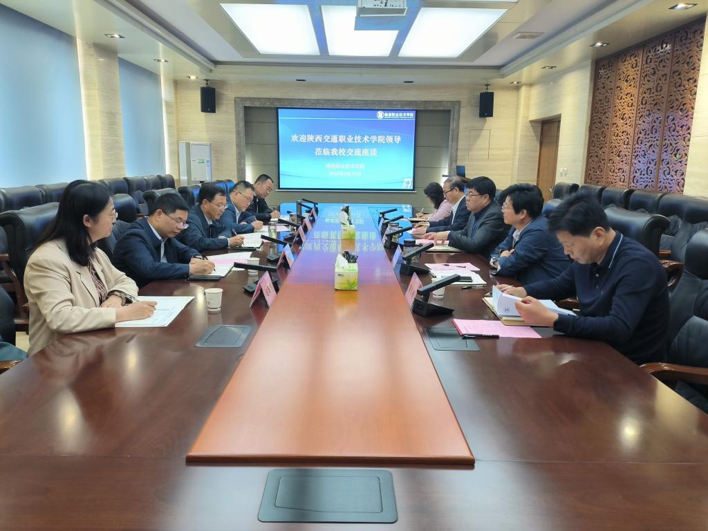 4月19日上午,陕西交通职业技术学院党委副书记薛安顺一行5人来校考察交流。党委副书记刘瑞明出席座谈会。
