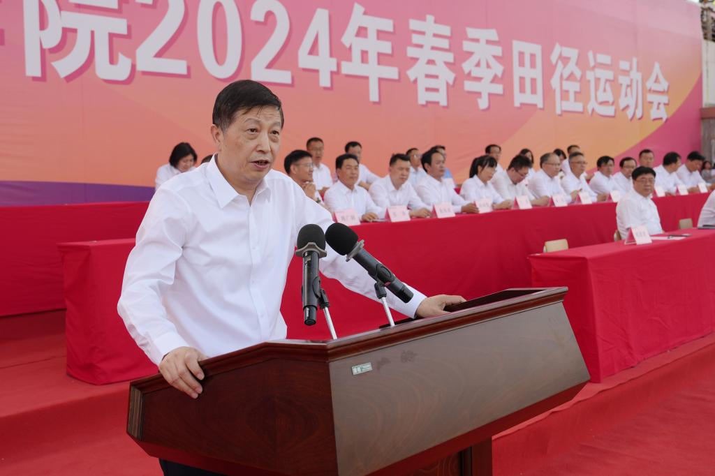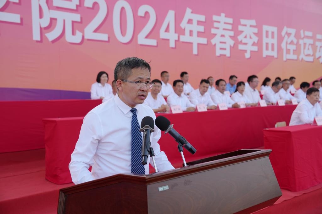 春暖花开,万物竞发。4月25日至26日,学校2024年田径运动会在南校区田径场举行。党委书记王周锁,校长仲伟周,党委副书记刘瑞明,党委副书记、纪委书记王勇胜,副校长蒋平江、胡俊鹏、张朝晖,运动会组委会全体成员,各学院(部)党总支书记、院长、各处室负责人,以及大一、大二辅导员、学生近万余人参加了开、闭幕式。来自12个二级学院和17个工会分会代表队的500余名运动员参加了31个比赛项目的紧张角逐。