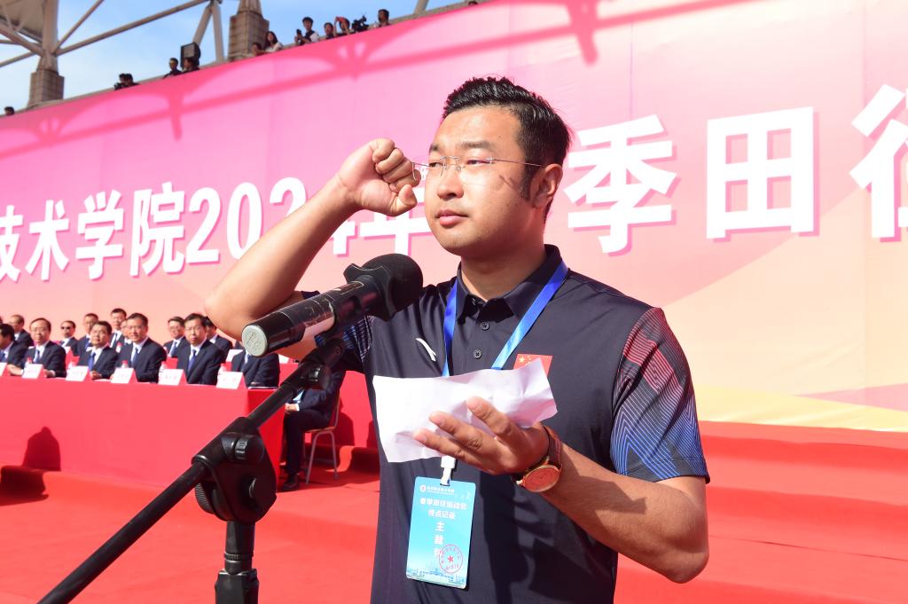 运动会总裁判长屈睿宣布比赛成绩