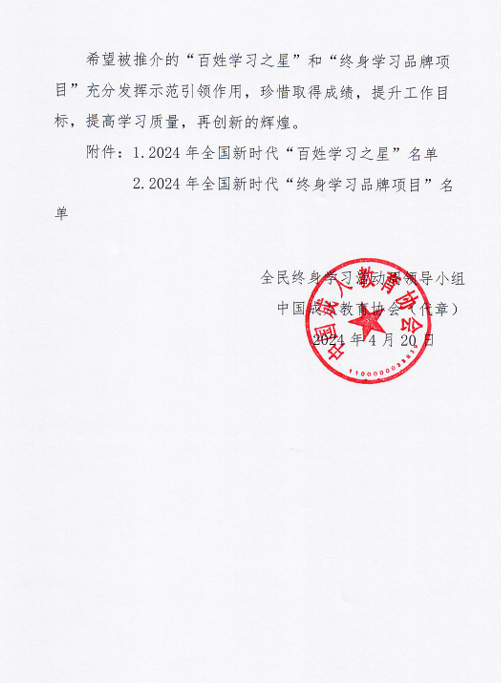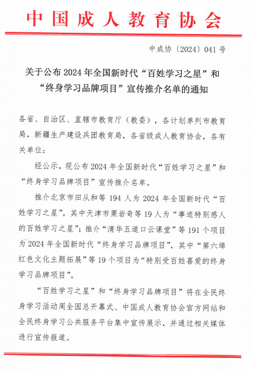 近日,中国成人教育协会和省教育厅公布了2024年全国和全省新时代“终身学习品牌项目”推介名单,beat365官网继续教育与培训学院《“农民吹哨 专家报到”终身教育促振兴》项目成功入选全国和全省新时代“终身学习品牌项目”。这是学校第二次获得全国新时代“终身学习品牌项目”,也是连续四年获得省级新时代“终身学习品牌项目”。