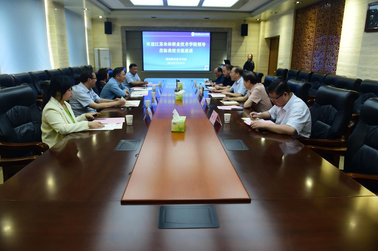 5月16日,江苏农林职业技术学院党委副书记、院长潘永圣,中国现代农业职业教育集团秘书长、江苏农林职业技术学院原副院长贾君一行5人来校考察交流。校长仲伟周、副校长祝战斌陪同考察并座谈。
