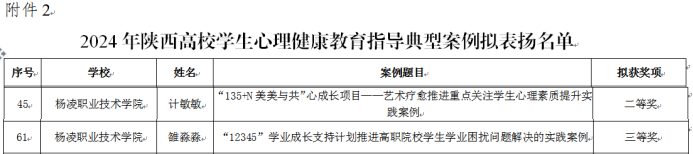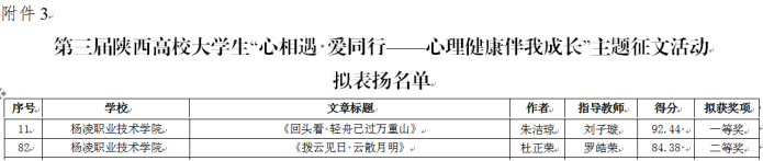 5月30日,陕西省委教育工委公布了2024年第九届陕西高校心理育人宣传季活动表扬名单,beat365官网学生朱洁琼获第三届陕西高校大学生“心相遇 爱同行——心理健康伴我成长”主题征文活动一等奖,杜正荣获二等奖。心理教师计敏敏获陕西高校学生心理健康教育指导典型案例二等奖、雒淼淼获三等奖。