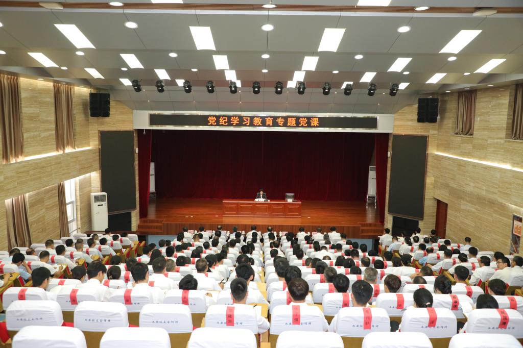 作为党建联系点,邢善萍随后为党员干部和师生党员代表讲了党纪学习教育专题党课。她强调,要深入学习贯彻习近平总书记关于全面加强党的纪律建设的重要论述,准确把握六项纪律的主旨要义和规定要求,增强严守纪律的政治自觉、思想自觉、行动自觉。要把开展党纪学习教育与推动职业教育高质量发展齐抓共促一体推进,坚持立德树人,深耕内涵发展,为谱写陕西新篇、争做西部示范作出更大贡献。