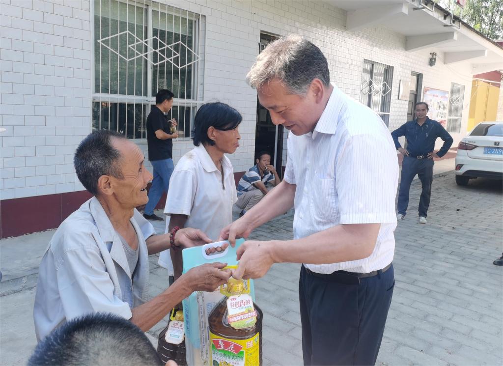 调研期间,韩明军还看望慰问了党员和帮扶户代表,为他们送去米、油等生活物资。