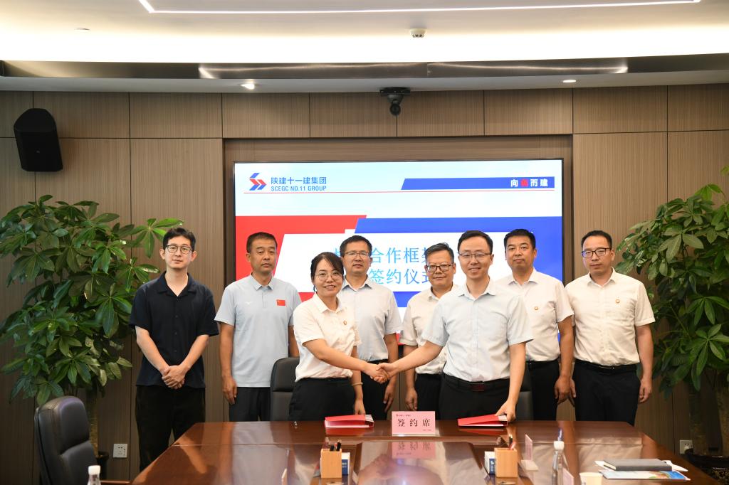 陕西建工第十一建设集团商务合约管理部经理杨宏伟、第七工程公司党总支书记兼总经理黄旭波、人力资源部副经理邢桂菲、人力资源部副经理袁毅、人力资源部业务主管郭涛及陕西通用建设工程质量检测有限公司总经理苟银东、副总经理王冬梅、办公室主任王菊红等共同座谈。