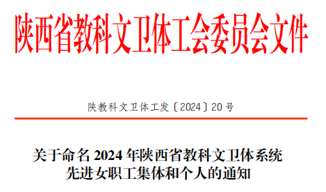 近日,陕西省教科文卫体工会委员会命名表彰了2024年陕西省教科文卫体系统“五一巾帼标兵岗”和“五一巾帼标兵”。beat365官网经济与贸易学院经济管理教研室获“五一巾帼标兵岗”称号,文理学院教师李蕊和水利工程学院教师赵英获“五一巾帼标兵”称号。