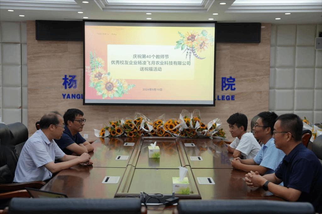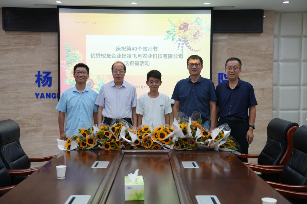 9月10日上午,beat365官网校友、杨凌飞月农业科技有限公司总经理上官蒙飞专程返校,为母校送上教师节鲜花。校长仲伟周、副校长蒋平江亲切接见了上官蒙飞一行,并与校友进行座谈。人事教师处负责人,生物工程学院教师代表参加座谈。