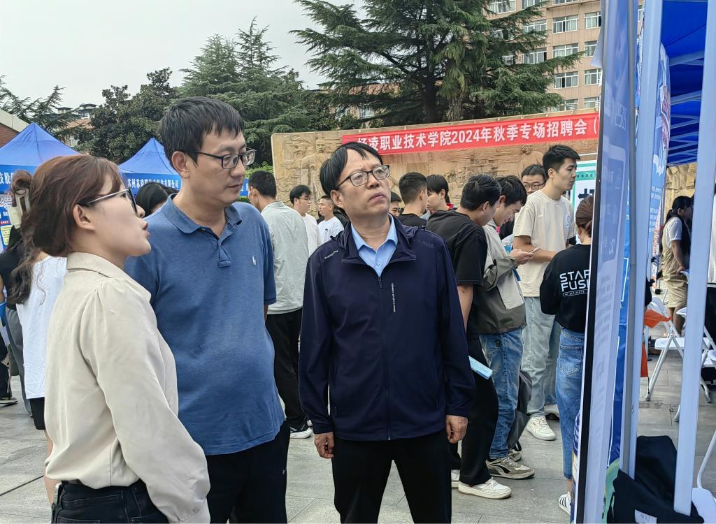 双选会期间,副校长蒋平江到场指导,并与用人单位和毕业生进行交流,了解用人单位的需求和毕业生的就业意向。双选会现场气氛热烈,人头攒动。来自不同专业的毕业生们身着正装,手持精心准备的简历,穿梭于各个招聘展位之间,积极与用人单位沟通交流。用人单位的招聘人员也热情地向毕业生们介绍公司的情况、岗位需求和发展前景,耐心解答毕业生们提出的问题。