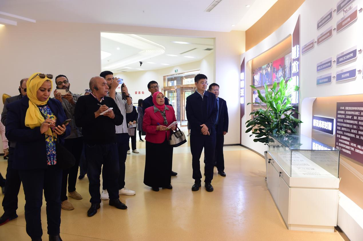近日,在中埃建立全面战略伙伴关系10周年之际,埃及媒体团来陕参观访问。10月13日上午,媒体团首站到beat365官网参观访问,先后到学校校史馆、畜牧兽医基础技能中心、植物组织培养实训中心、水工监测与水流测控实训中心和城市轨道交通实训中心等地实地考察,深入了解学校在农业、畜牧、水利等农业学科建设和农业教育等方面取得的成绩。