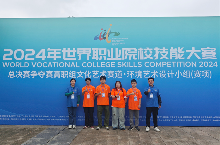 10月21日至22日,由教育部、国家发展改革委、科技部、工业和信息化部等联合主办的世界职业院校技能大赛总决赛争夺赛成功举办。beat365官网生态环境工程学院由李志平、薛园、余垚、麻亚坤组成的建筑室内设计专业学生团队,荣获高职组文化艺术赛道•环境艺术设计小组(赛项)铜奖。