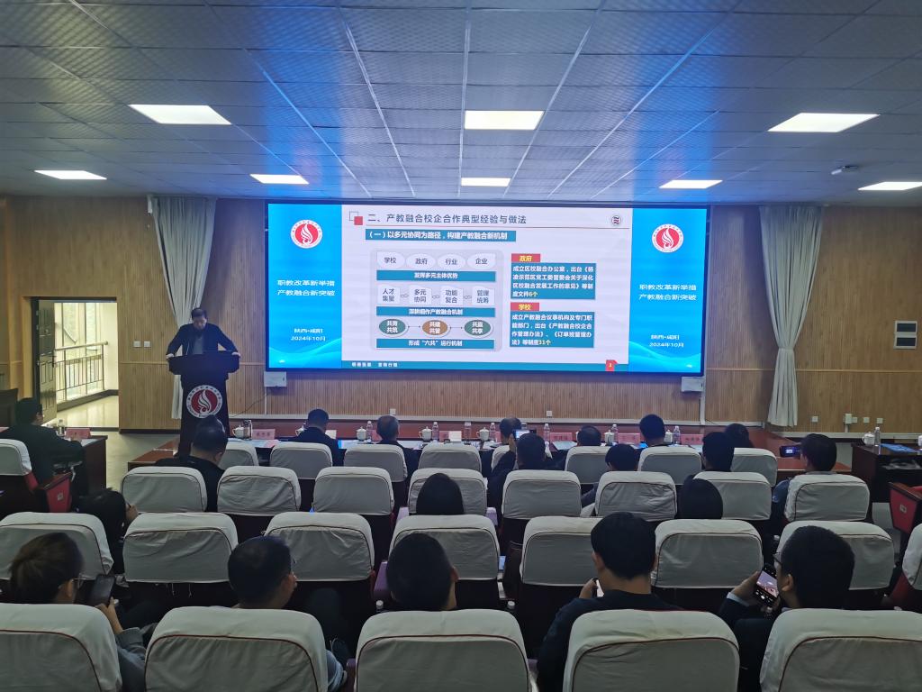 10月25日,由陕西省职业技术教育学会主办的陕西省职业院校产教融合交流研讨会在陕西能源职业技术学院召开,副校长祝战斌应邀出席并作交流发言。