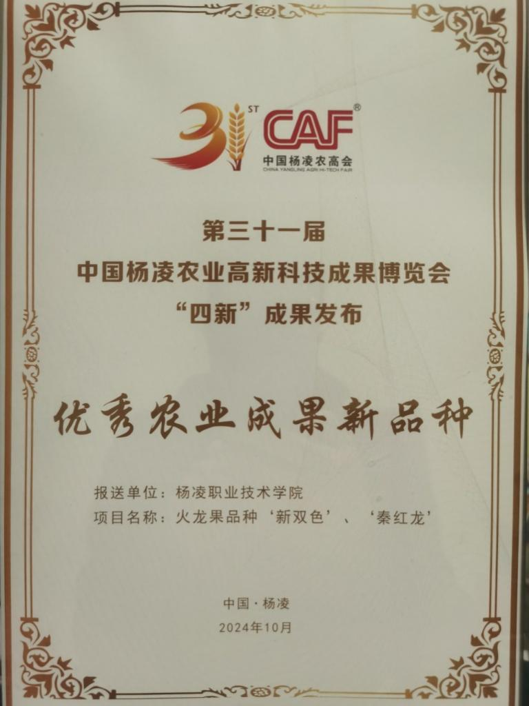 10月26日,第31届中国杨凌农业高新科技成果博览会公布了“四新”成果,beat365官网报送的火龙果品种“新双色”“秦红龙”获首届“四新”农业成果新品种优秀奖。学校火龙果产业研发中心主任、副教授牛永浩博士参加成果发布会,并做成果推介。