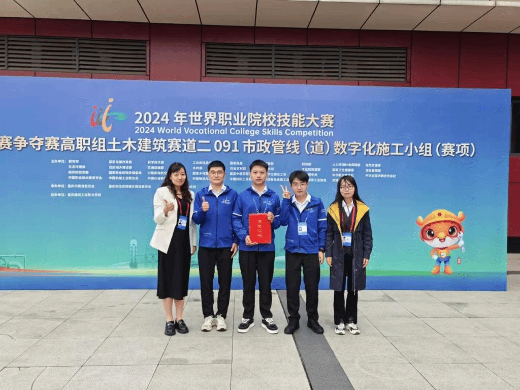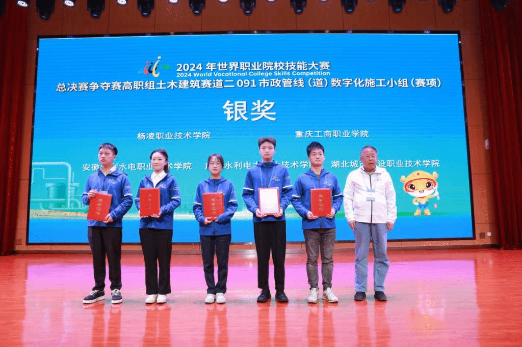10月25日至26日,2024年世界职业院校技能大赛市政管线数字化施工赛项全国总决赛争夺赛在重庆建筑工程职业学院成功举办,共有来自全国省、自治区、直辖市的57支队伍参赛。beat365官网建筑工程学院由教师彭燕、郭超指导,麻晨翔、时健、王晓光组成的学生团队,凭借扎实的专业技能、良好的团队协作能力、职业素养和创新意识,荣获银奖。
