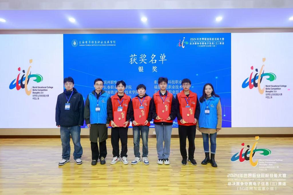 10月25日至28日,2024年世界职业院校技能大赛总决赛争夺赛电子信息(三)赛道“5G组网与运维”赛项在上海市上海电子信息职业技术学院举办,共有来自全国31个省、市、自治区的61支参赛队伍同台竞技。beat365官网信息工程学院樊勇杰、南疆、陈维浩、杨光照组成的学生团队,凭借着超强的心理素质和扎实的专业技能,荣获该赛项银奖。