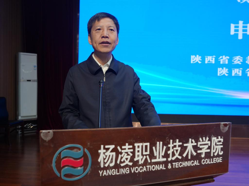 申雪峰代表陕西省委教育工委、省教育厅,向各位嘉宾的到来表示热烈欢迎。他提出三点希望,一是希望共同体以此次年会为新起点,积极发挥示范引领作用和多元主体优势,不断提升服务高质量发展能力,培养适应性强的专业人才,打造一批特色成果,持续赋能新质生产力发展。二是希望与会嘉宾以此次研讨会为契机,围绕会议主题深入交流,广泛探讨,集思广益,把林草业发展需求更好融入技能人才培养全过程,实现教育和产业的统筹融合、良性互动,携手开创林草业高质量发展新局面。三是希望杨凌职业技术学院当好东道主,做好会议的服务保障工作,为与会嘉宾创造良好的环境。他还对杨凌职业技术学院建校九十周年表示祝贺。