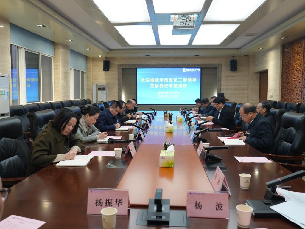 11月18日下午,杨凌示范区党工委副书记王军一行来校考察调研。党委书记韩明军、校长仲伟周、副校长胡俊鹏陪同考察,座谈会由党委副书记刘瑞明主持。
