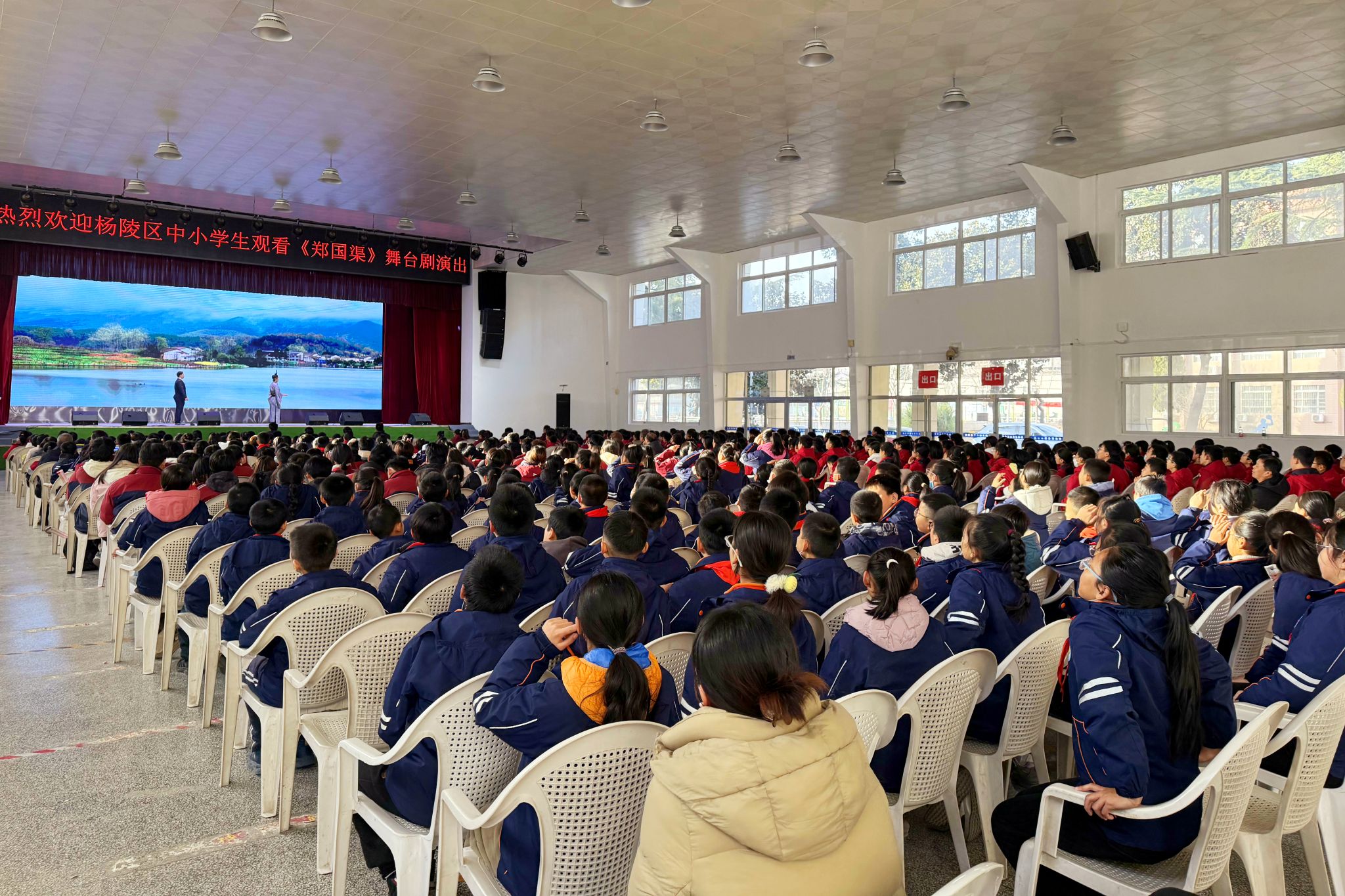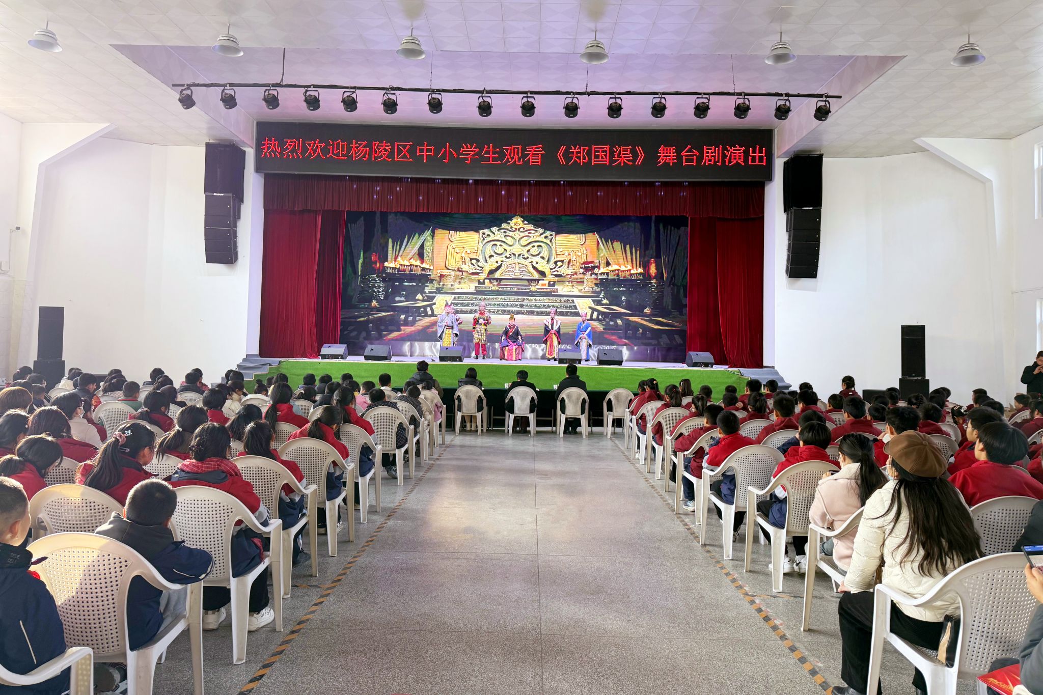 为弘扬中华优秀传统文化,加强大中小学思想政治教育一体化工作,12月13日下午,杨陵区教育局组织杨陵区中小学生来beat365官网集体观看原创舞台剧《郑国渠》。杨陵区教育局局长王珺、副局长秦莉菲,beat365官网马克思主义学院负责人,以及来自杨陵区第一实验学校、张家岗小学、杨陵小学、高新第三小学、职教中心、邰城实验学校、高新初级中学等450余名中小学师生共同观看了演出。