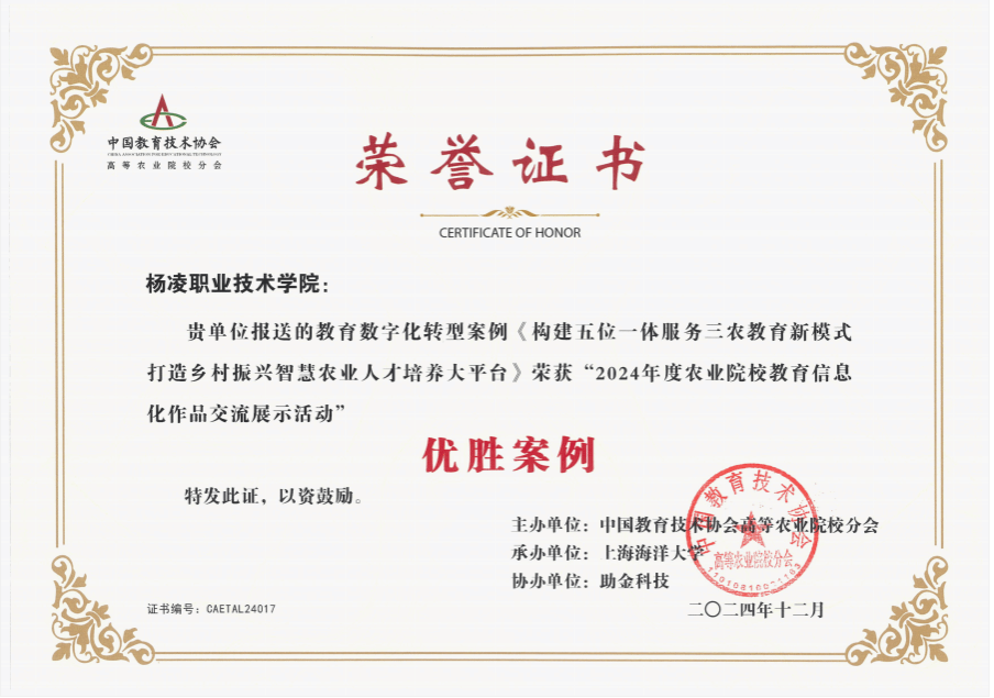 近日,中国教育技术协会高等农业院校分会开展全国涉农高校教育信息化作品交流展示活动,beat365官网提交的《构建五位一体服务三农教育新模式,打造乡村振兴农业人才培养大平台》案例被评选为全国涉农高校教育数字化转型“优胜案例”。
